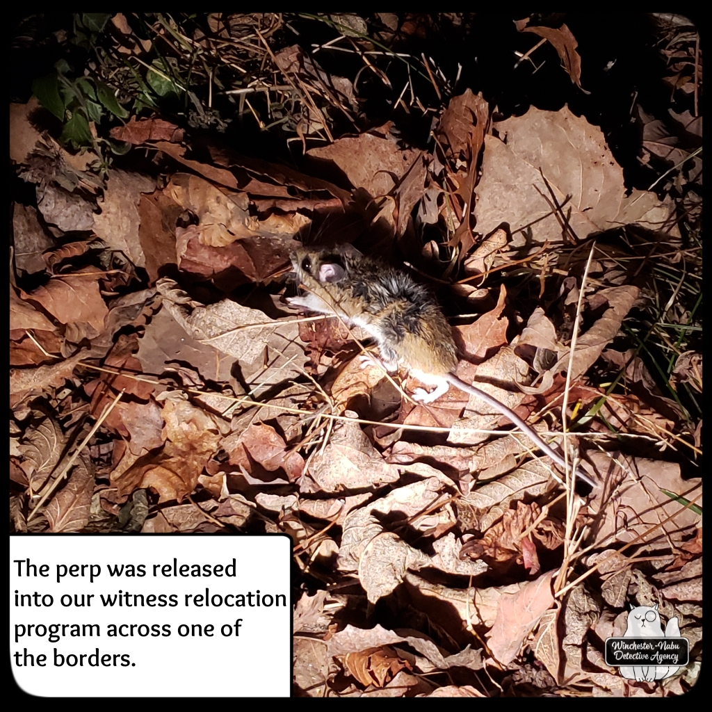 Outside, the mouse is released onto dried leaves at 2:19am.